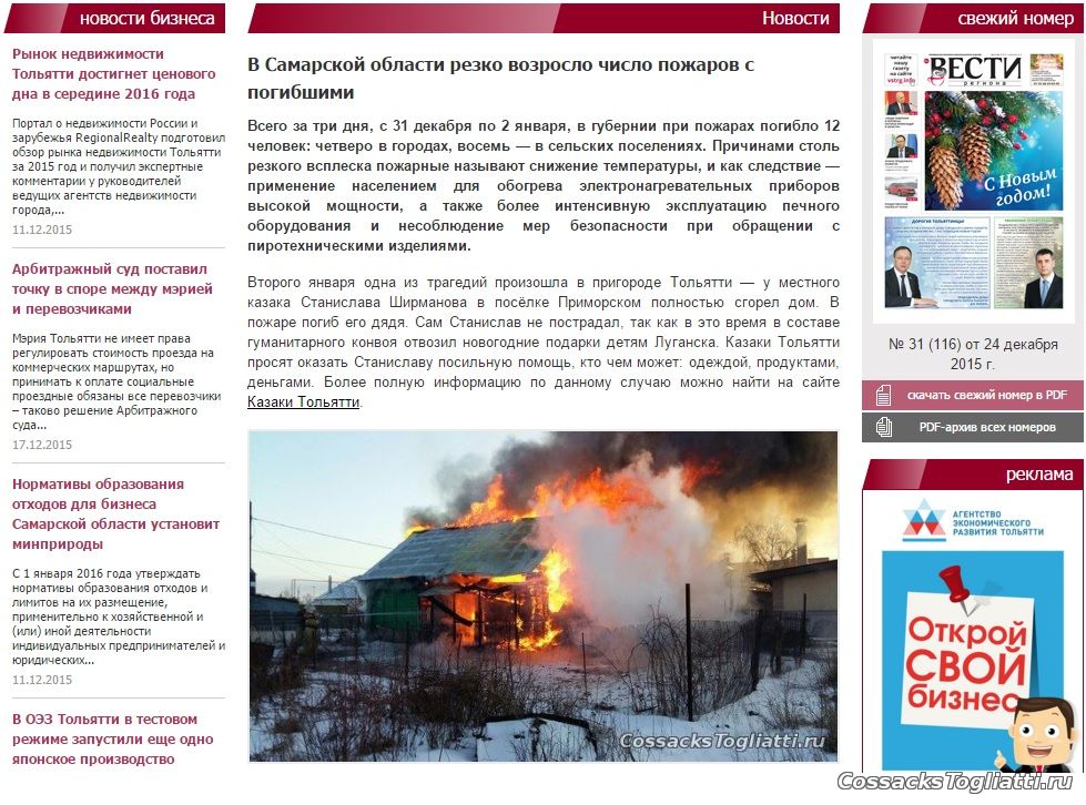 Об этом было также сообщено в материалах Информагентства “КАЗАКИТОЛЬЯТТИ”.